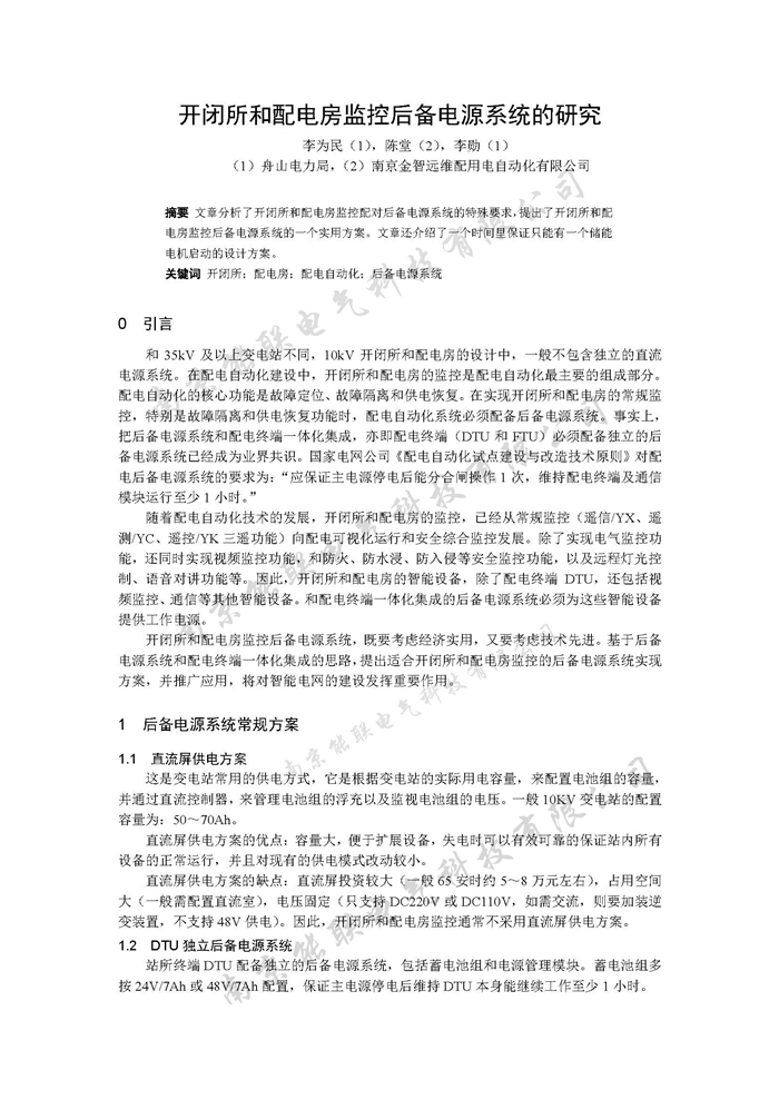 開(kāi)閉所和配電房監(jiān)控后備電源系統(tǒng)的研究